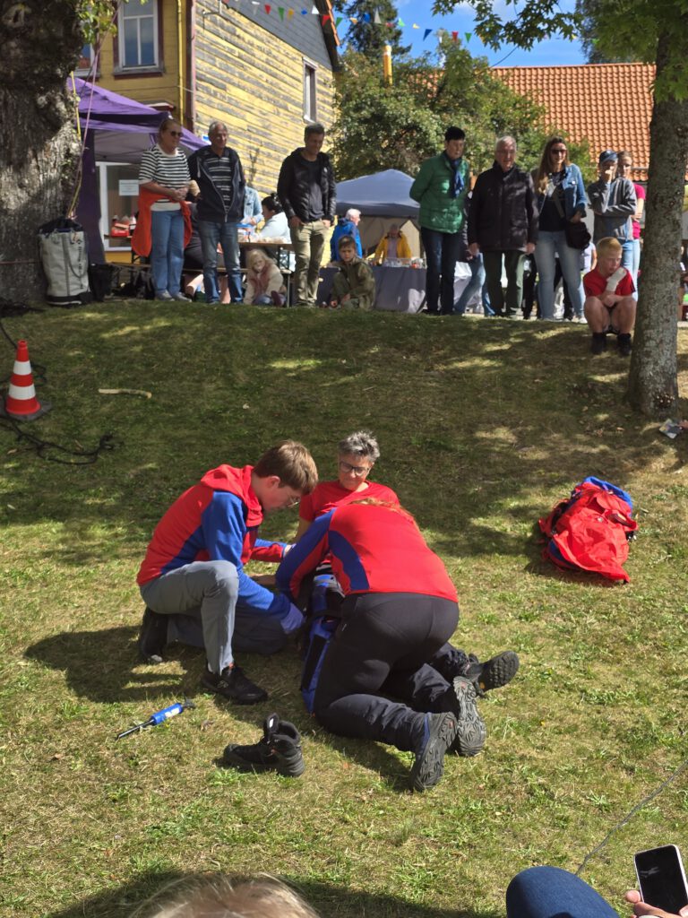 Beim Andreasberger Stadtfest im Sommer 2025 hatten wir zwei Aufführungen, hier seht ihr einen kleinen Teil der ersten Aufführung, die Patientin stürzte mit dem Fahrrad, zur Stabilisierung des Beines wurde eine Vakuumschiene angelegt